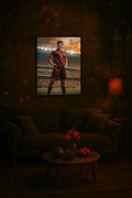 Fier, puissant, charismatique : ce portrait sur mesure capture toute l’intensité d’un joueur au sommet de son art. Inspiré des grandes affiches sportives, il sublime la prestance et la passion du football. Une œuvre forte, idéale pour les amateurs de ballon rond et de style affirmé.