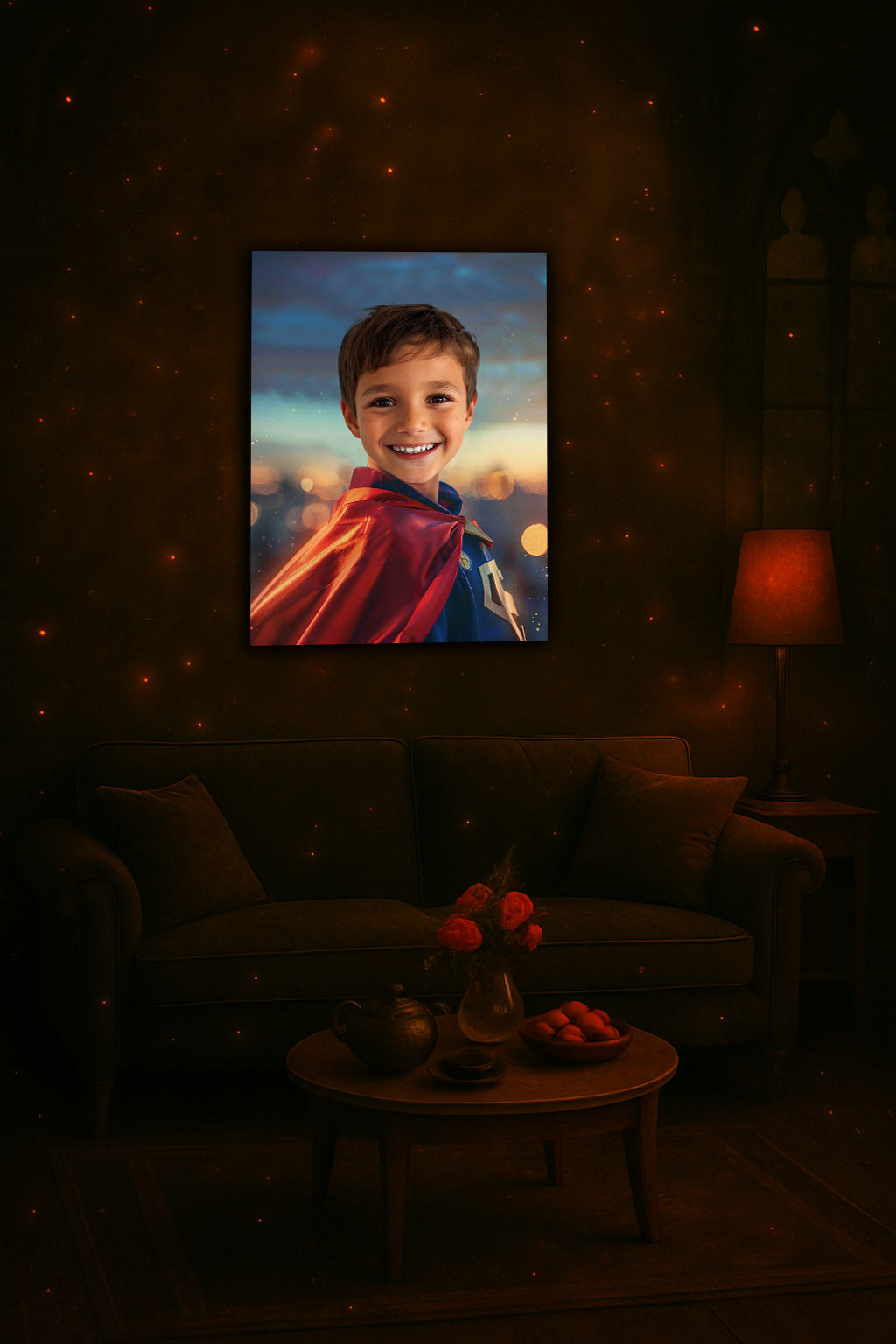 Un portrait saisissant où votre enfant devient le héros de sa propre légende. Inspiré des plus grands super-héros, ce tableau capture toute la force, le courage et l’aura d’un protecteur moderne, prêt à sauver le monde.